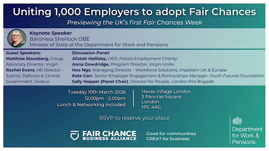 Come join us at Havas UK on 10th March, 2026 at 12:00 PM to learn more about Fair Chances Week, Unite 1k, and our mission to mobilise 1,000 employers to adopt Fair Chances by April 2029